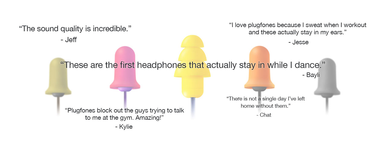 Tired of headphones that fall out at the gym? PlugFones stay in no matter how much you sweat.